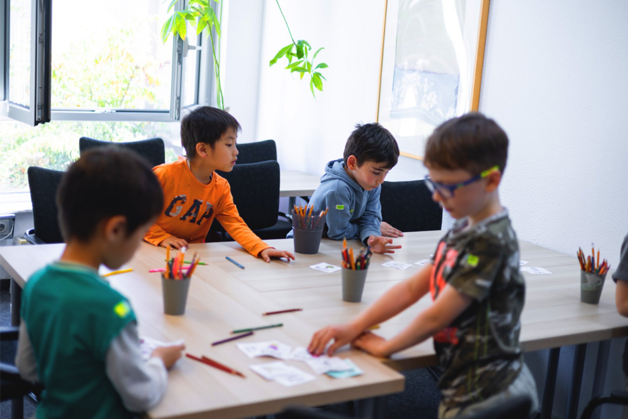 Unsere jüngeren Lernenden im Alter von 4 bis 12 Jahren nehmen vormittags (09:00 – 13:00 Uhr) am Unterricht teil, während die Jugendlichen (ca. 12,5/13 bis 16 Jahre) nachmittags (13:30 – 17:30 Uhr ) zu uns kommen. Bei der Einteilung der Gruppen achten wir sorgfältig darauf, dass der Altersunterschied innerhalb einer Gruppe maximal ca. 1–1,5 Jahre beträgt.